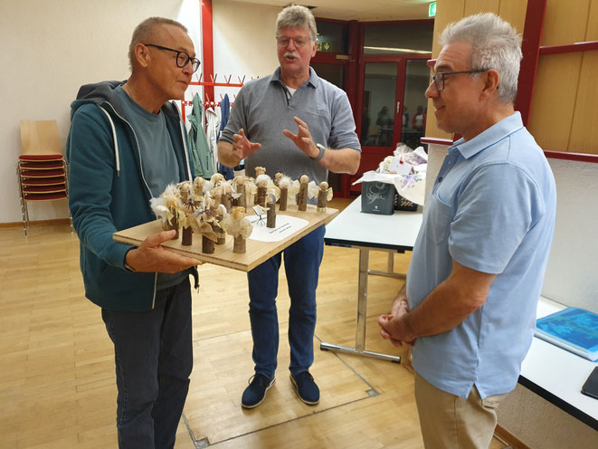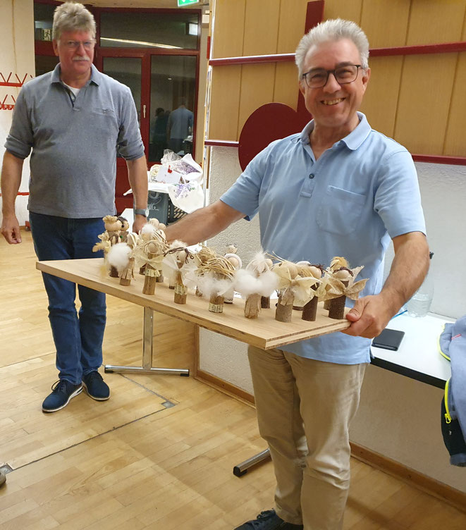 Sängerinnen und Sänger dazu, unserem Chorleiter Alexander Reuter zum runden Geburtstag eine Chor-Skulptur aus Naturmaterialien anzufertigen, welche alle Chormitglieder als singende Engel während